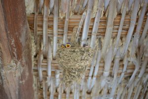 Pasados apenas unos días, pude comprobar con asombro que el nido cumplía su cometido. Cuatro inquietas cabecitas cubiertas de pelusilla asomaban sus amarillos picos, sorbiendo aire y reclamando atención. Componían una imagen graciosa y conmovedora a la vez.